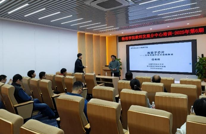 1024日,中国科学技术大学任希锋教授主讲“光量子芯片—从单元器件到大规模集成”研讨培训,介绍集成光量子芯片的优势与三大前沿研究方向,分享将科研前沿融入课堂的实践经验,为相关课程建设注入创新活力。与会教师表示将积极吸收报告精华,推动课程内容与学科发展同步更新。学院将持续组织高水平教学研讨活动,助力教师提升教学创新能力。一系列培训活动涵盖教学改革、技术赋能、学科前沿与人才培养等核心议题,为全院教师提供了丰富的创新思路与实践经验。物理学院将持续推进教师专业成长,以高质量教学赋能新时代物理学领军人才培育。