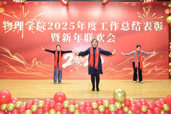 为总结过去一年工作成果,表彰先进集体与优秀个人,激励全院师生在新起点上再创佳绩,12月31日上午,物理学院在活动中心101举办2025年度工作总结表彰暨新年联欢会。学院在职教职员工70余人参加活动。