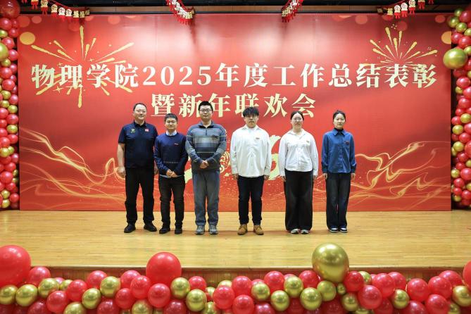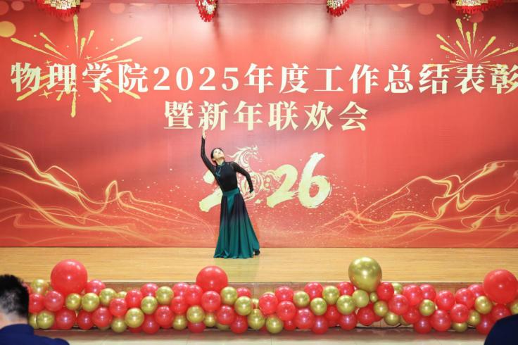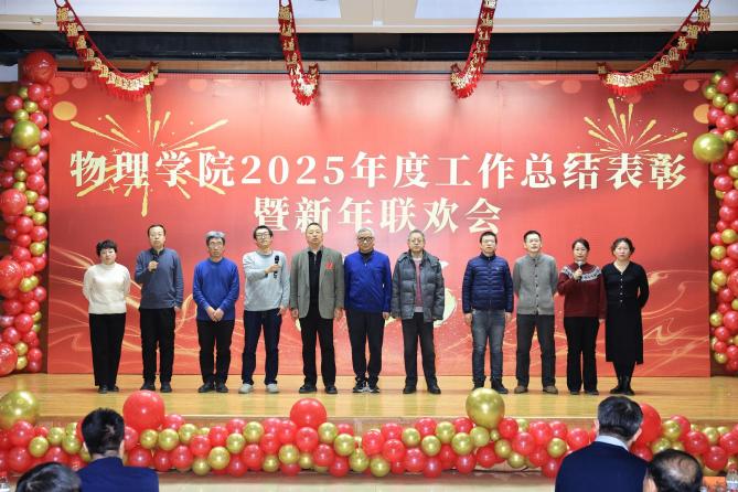 为总结过去一年工作成果,表彰先进集体与优秀个人,激励全院师生在新起点上再创佳绩,12月31日上午,物理学院在活动中心101举办2025年度工作总结表彰暨新年联欢会。学院在职教职员工70余人参加活动。