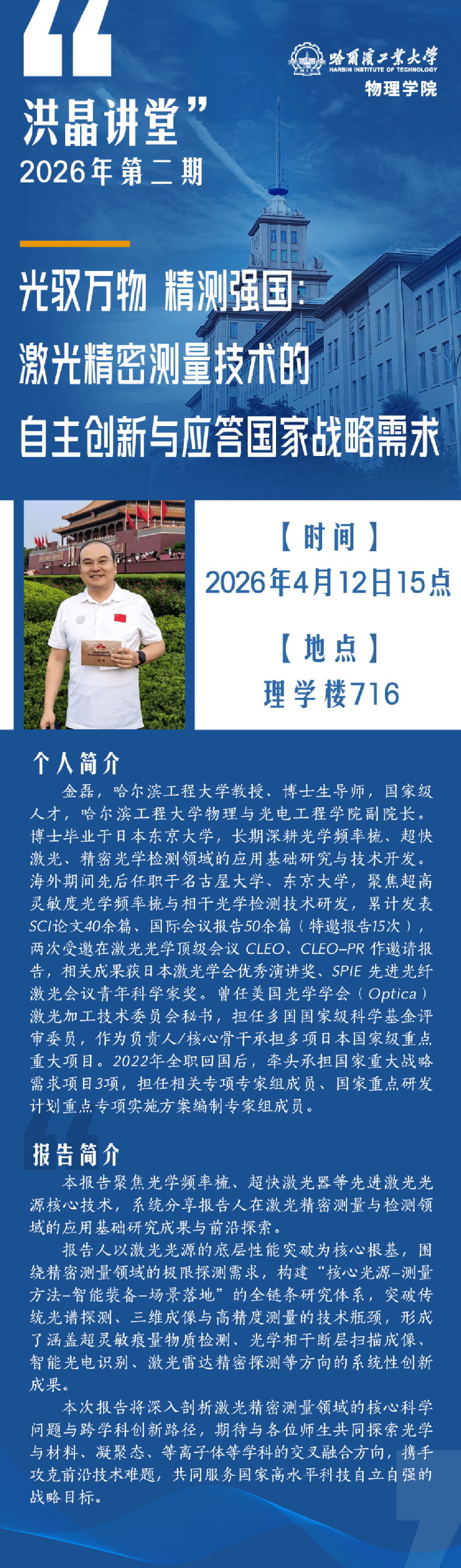 【洪晶讲堂2026年第2期】光驭万物 精测强国:激光精密测量技术的自主创新与应答国家战略需求